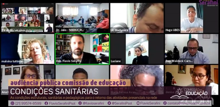Durante a audiência, o presidente da Comissão de Educação, deputado Flavio Serafini, apresentou um relatório desenvolvido pelo colegiado, onde foram apontadas as dificuldades de retorno das aulas presenciais nas unidades de ensino da rede estadual. Na visão da professora Luciane Azevedo, o relatório reforça o posicionamento da UPPES. “Como o próprio relatório sinaliza, muitas escolas não possuem o quantitativo suficiente de funcionários da limpeza, além de não terem recebido os recursos necessários para a devida higienização e também não possuem funcionários para aferirem a temperatura dos alunos. Conforme citado, muitas dessas salas possuem a janela lacrada, não possibilitando a circulação de ar. Além disso, em algumas salas de aula, o distanciamento de dois metros entre alunos e professores não está sendo respeitado”, assinalou.