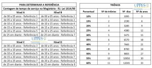 Professor, verifique seu tempo de serviço e acompanhe sua progressão, de acordo com as tabelas abaixo: