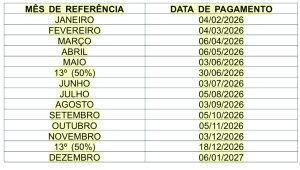 FOI PUBLICADA NO DIÁRIO OFICIAL DE 17 DE DEZEMBRO DE 2025, A PORTARIA SECC/SUBGEP Nº 05 DE 16 DE DEZEMBRO DE 2025 DISPÕE SOBRE O CALENDÁRIO DE PAGAMENTO DOS SERVIDORES DA ADMINISTRAÇÃO PÚBLICA ESTADUAL DIRETA E INDIRETA, DOS PENSIONISTAS PREVIDENCIÁRIOS DO ESTADO DO RIO DE JANEIRO E DOS EMPREGADOS DAS EMPRESAS PÚBLICAS E SOCIEDADES DE ECONOMIA MISTA SOB CONTROLE DO ESTADO, REFERENTE À COMPETÊNCIA 2026.