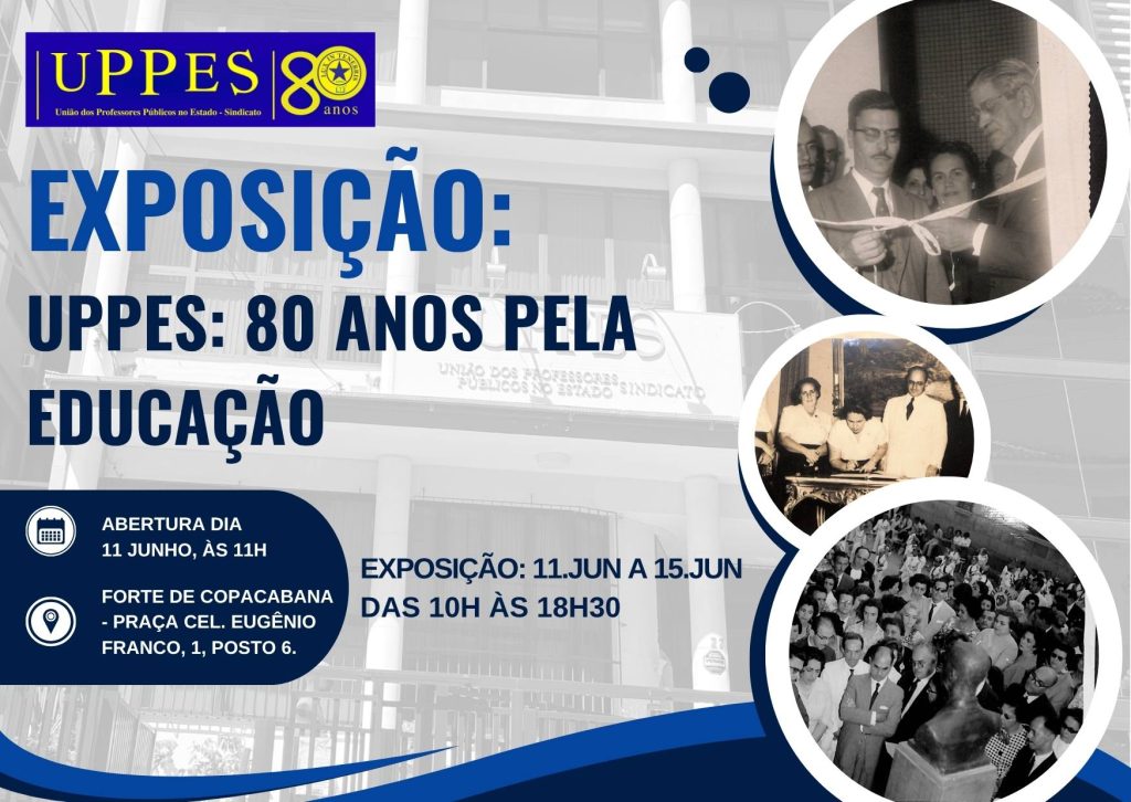 Em celebração aos seus 80 anos de história e luta em defesa da educação pública e do Magistério Fluminense, a UPPES – União dos Professores Públicos no Estado-Sindicato – promove exposição fotográfica comemorativa no Forte de Copacabana. A abertura oficial será realizada no dia 11 de junho, às 11h, com entrada franca mediante apresentação do […]