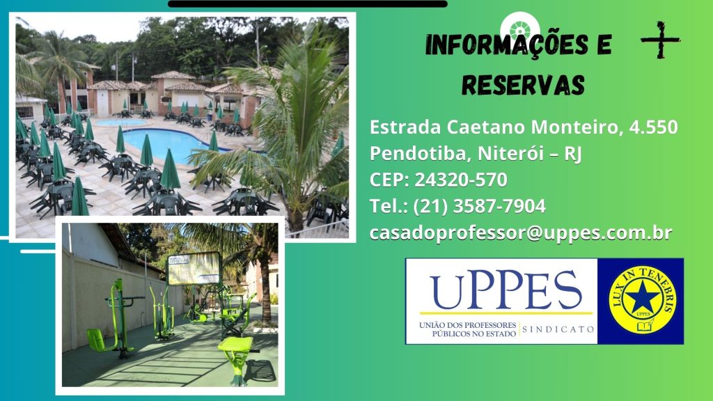 Na manhã desta sexta-feira (02/08), o presidente da UPPE-Sindicato, Prof. Dr. Stelling, esteve na Unidade Estadual de Hospedagem e Lazer da UPPES, a Casa do Professor, localizada em Pendotiba, Niterói, para a reunião mensal com a direção da unidade. Na ocasião, o diretor da unidade, professor Jovenal Alcântara e a supervisora administrativa, professora Cleia Soares, […]