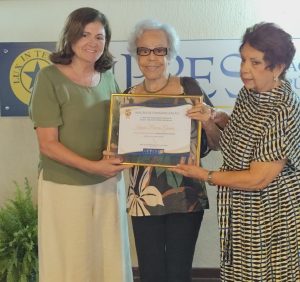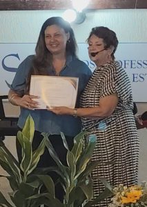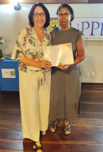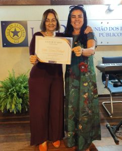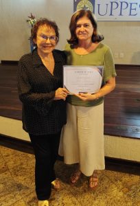 A conselheira da UPPES e poetisa, professora Irinéa Pereira Gomes e a poetisa, professora Alba Helena foram as homenageadas da tarde por suas trajetórias de sucesso no cenário da literatura, cultura e arte, no estado do Rio de Janeiro, recebendo a Moção de Congratulação da entidade.