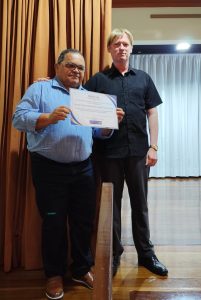 Durante o encontro, o coordenador do Fórum Sindical do Leste Fluminense, José Juvino, recebeu do presidente da UPPE-Sindicato, prof. Dr. Stelling, uma moção de agradecimento pelo apoio na realização e divulgação do evento.