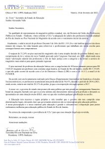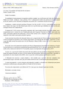 A UPPE-Sindicato encaminhou ofício às autoridades governamentais do Estado do Rio de Janeiro reivindicando a equiparação do percentual de recomposição de 33,24%, aplicado no Piso Nacional do Magistério, para o professorado público estadual. No documento, encaminhado ao governador Cláudio Castro e ao secretário estadual de Educação, Alexandre Valle, a presidente da UPPES, Teresinha Machado da Silva, ressalta a necessidade de valorização da categoria e o investimento na educação pública. De acordo com a educadora, o reajuste de 33,24% no Piso Nacional do Magistério não é uma simples decisão do governo federal, mas o cumprimento da lei e valores do novo Fundo de Desenvolvimento da Educação Básica (Fundeb) aprovado pelo Congresso Nacional, em 2020, objetivando uma maior valorização salarial dos professores a fim de fazer justiça com a categoria e de tornar a carreira do magistério mais atrativa para quem pretende ingressar.