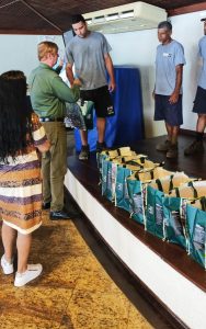 Ao final, os funcionários receberam  um KIT Cesta de Natal fruto de valores obtidos a partir de um trabalho de reciclagem, desenvolvido pela gestão da Unidade, durante todo o ano, através de Projeto de Educação Ambiental promovido pela direção da Casa do Professor.