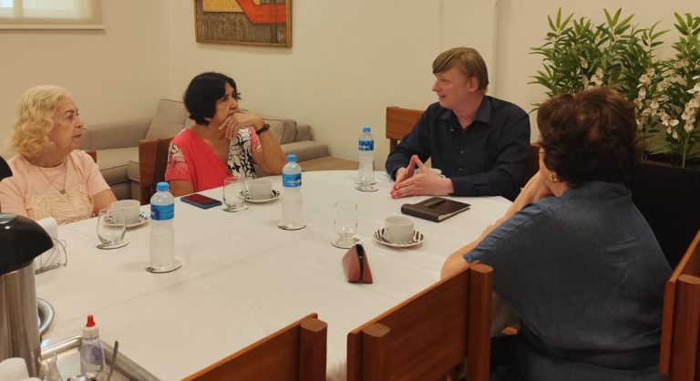 As conselheiras Dóris da Silva Abreu, Maria de Lourdes Ventura e Therezinha Pacheco interagiram com o presidente gerando profícuo diálogo esclarecedor das metas alcançadas e ainda previstas para este ano de 2025.